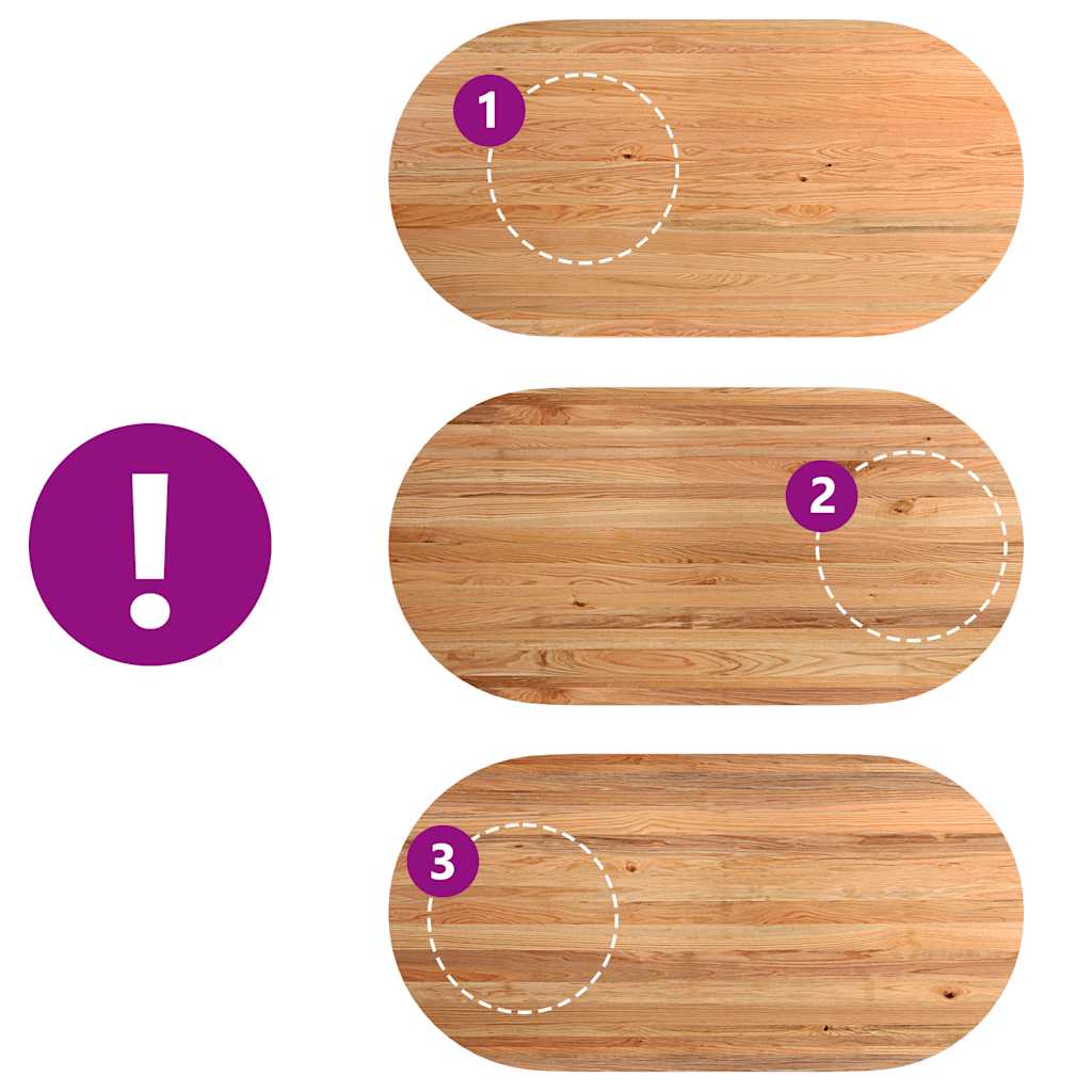 - Noesten en kleine gebreken zijn opgevuld met zwart vulmateriaal om een mooi en glad tafeloppervlak te geven. Raadpleeg de afbeeldingen voor voorbeelden.